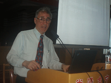 美國兩院士 衡陽講“微創(chuàng)” 發(fā)布時間:2006年5月25日 預(yù)覽:8868次 市中心醫(yī)院“接軌”國際醫(yī)學(xué)美國兩院士 衡陽講“微創(chuàng)”圖為Ibrahim教授授課情景 本報訊 5月24日,美國兩位醫(yī)學(xué)院士在市中心醫(yī)院開展學(xué)術(shù)訪問活動,200多醫(yī)務(wù)人員認(rèn)真聆聽。――――― 受市中心醫(yī)院邀請,(首次來湖南),美國東部微創(chuàng)外科協(xié)會主席、外科院士、腹腔鏡手術(shù)專家Ibrahim教授講授主題為《美國微創(chuàng)外科技術(shù)新進(jìn)展》,美國外科院士、血管外科專家Allen Yu教授講授主題為《頸內(nèi)動脈內(nèi)膜切除術(shù)》,自1989年,世界首臺腹腔鏡問世后,微創(chuàng)外科已被應(yīng)用于醫(yī)學(xué)各個領(lǐng)域,代表醫(yī)學(xué)發(fā)展方向,具有手術(shù)切口小,壞死組織少,并發(fā)癥少,恢復(fù)快等優(yōu)點。英語講學(xué),視頻手術(shù)演示,聽課者受益匪淺,專家嚴(yán)謹(jǐn)?shù)膶W(xué)術(shù)作風(fēng)和扎實的技術(shù)功底給人深刻印象,講座后,兩位院士興致勃勃參觀了中心醫(yī)院,對這所百年老院蘊(yùn)含的生機(jī)大為欣賞,據(jù)了解,市中心醫(yī)院致力科技興院,構(gòu)建學(xué)術(shù)型醫(yī)院,近年來,已多次舉辦省、市級學(xué)術(shù)交流會,本周還將舉辦中南大學(xué)科技周三湘行走進(jìn)衡陽活動。
