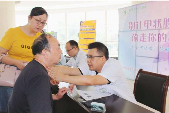 感謝有你 發(fā)布時間:2018年09月27日 17:16:04 預覽:28916次 “感謝有你,感動生命/2018年度甲狀腺免費體檢”活動取得圓滿成功。 攝影:洪余梅。 編輯:羅瓊 通訊員王毅報道:2018年9月21日下午,衡陽市中心醫(yī)院乳甲科、超聲科、體檢中心聯(lián)合開展“感謝有你,感動生命/2018年度甲狀腺免費體檢”活動取得圓滿成功。此次活動主要為市民提供免費甲狀腺彩超檢查,免費醫(yī)療咨詢、發(fā)放健康宣傳冊等。旨在通過這次體檢活動增加市民對甲狀腺健康的關(guān)注,了解定期檢查身體的重要性,鼓勵養(yǎng)成健康的生活習慣,能盡早發(fā)現(xiàn)疾病,并做到早預防、早治療。