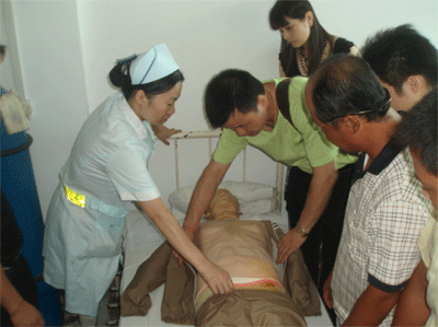我院舉行急救知識培訓(xùn)班(圖) 發(fā)布時間:2006年8月11日 預(yù)覽:6497次 為提高游泳場所救生員急救水平,我院近日在遠(yuǎn)程教室和示教室舉辦急救知識培訓(xùn)班,來自市游泳場.熊倪跳水學(xué)校等單位的教練和救生員系統(tǒng)學(xué)習(xí)了心肺復(fù)蘇.腦組織保護(hù)等溺水現(xiàn)場急救基本操作技能。圖為培訓(xùn)學(xué)員通過人體模特學(xué)習(xí)。(鄒建軍攝)