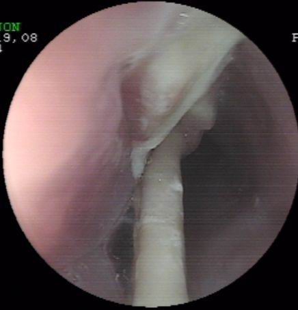 上個月末,一誤食異物(雞骨)胸骨后疼痛4天的患者經(jīng)胃鏡檢查確診為食管異物嵌頓。因患者異物嵌頓時間長,且患者其間還采取了其它一些清除異物的方法,造成異物的兩端均刺入食管壁,刺入處食管粘膜糜爛,充血,腫脹。按常規(guī),該患者應(yīng)收治外科行開胸手術(shù)取出術(shù),但患者家境貧寒,且為家里主要勞力,無法承受醫(yī)療費用及開胸術(shù)后所造成暫時的勞動能力降低的損失。為減輕患者經(jīng)濟負擔及痛苦,在確診食管異物尚未造成食管周圍重要臟器損傷的情況下,該室決定在胃鏡下試取,經(jīng)多方面嘗試,最終成功將一長約3.6cm兩端鋒利的雞骨(圖示)行內(nèi)鏡下取出,術(shù)后患者康復(fù)好,真正做到了微創(chuàng)手術(shù)解除患者大問題,減輕了患者經(jīng)濟及軀體負擔。